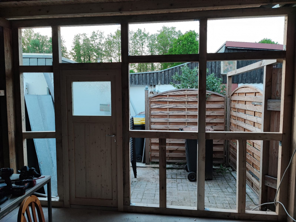 Mit vielen fleißigen Helfer haben wir wieder ein neues Projekt realisiert und unser Bürodach begrünt. Dies ist ein weiterer Schritt in unserer Gartenanlage ökologisch zu gestalten. Nach entsprechender Vorarbeit wurden die Materialien auf das Dach verbracht und ausgelegt. Um eine gute Verbindung zum Dach zu erhalten wurde zunächst Folie und dann ent-sprechende Profile im Quadart auf das Dach verlegt ohne hier das Dach zu beschädigen. Eine Verbindung ohne zu Schrauben. Der Halt wird nur durch den im Quadrat eingebrachten Kies er-reicht, der die Randprofile durch sein Gewicht fixiert und an Ort und Stelle hält. Unter einem Vlies wird eine entsprechende Pufferfolie aufgebracht, die dafür sorgt, dass keine Staunässe später unter der Bepflanzung entsteht.