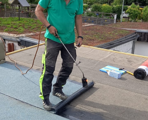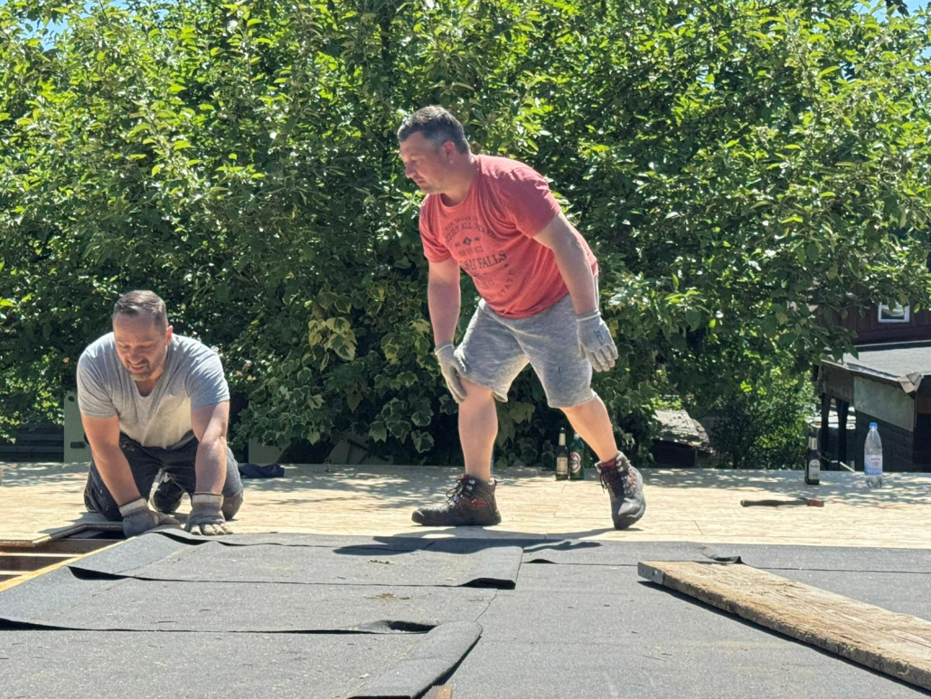 Bevor mit der Bepflanzung begonnen wird, muss das Vlies entsprechend bewässert werden. Nun kann mit der Verlegung der der Grünfläche begonnen werden. Rolle für Rolle wird auf das Dach verbracht und ausgerollt und verlegt.n Nach mehreren Stunden ist die Dachfläche komplett ausgelegt und muss nun über mehrere Wochen kontinuierlich bewässert werden, um ein Austrocknen der Dachfläche zu vermeiden. Nach getaner Arbeit war auch für das leibliche Wohl aller Helfer gesorgt. An dieser Stelle möchte sich der Vorstand bei allen Helfer nochmals bedanken.